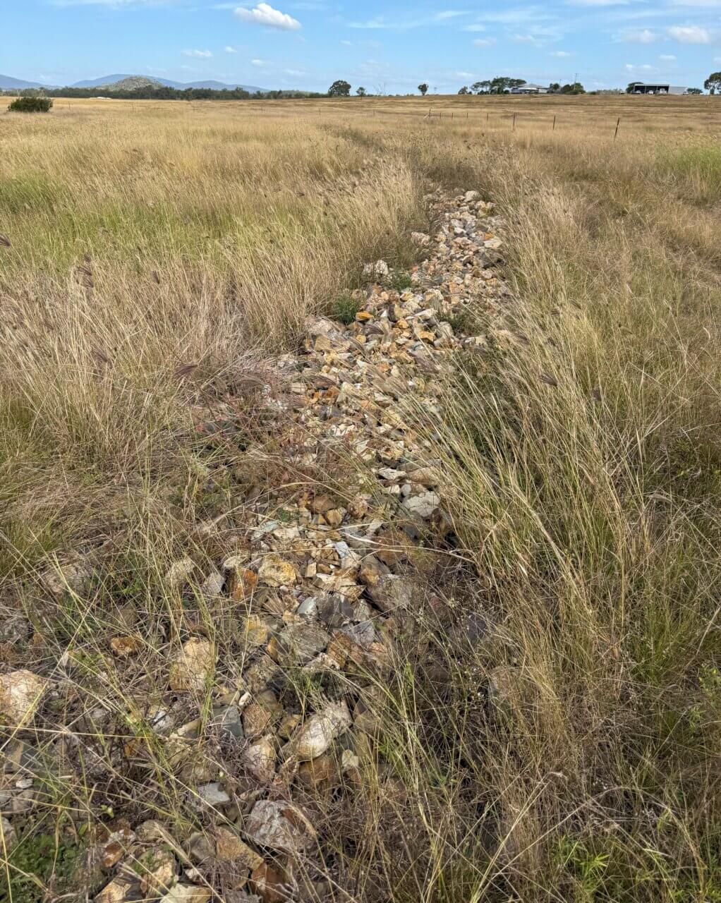 By the end of 2020, FBA had restored the gully on Kaye’s property using a combination of tried and tested erosion control methods to slow the flow of water and combat erosion. Funded through the Grazing Resilience and Sustainable Solutions (GRASS) program, the project included fencing the gully to exclude livestock, stabilising the head of the gully with rock and installing seven Porous Check Dams (PCDs) along the gully to trap sediment and encourage grass growth. Additionally, a contour bank and six whoa-boys were also installed above the gully to manage overland flow and prevent further degradation.