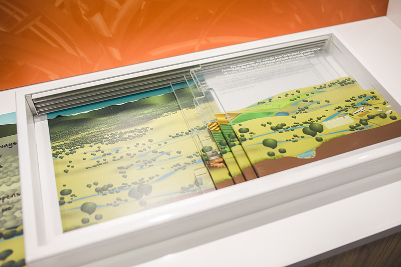 The interactive exhibit tells the story of our region’s natural assets, and what we must do to protect them. In the renovated Flow Centre, you will find 3D modelling, touchscreens, virtual reality, interactive displays, life-sized maps and even a few surprises.